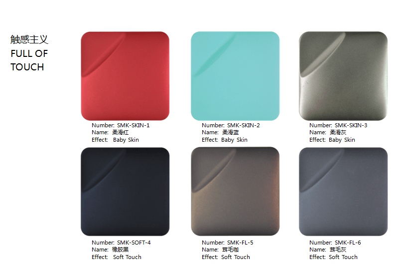 高弹性,高爽滑性,高耐磨性,附着力强,耐溶剂性能优越,耐水煮性强。喷涂于物体表面后,呈哑光或半哑光状态,手感细腻、平滑,外观雅致、庄重。符合绿色环保要求,对人体无任何损害。并可掩盖一般注塑出现的瑕疵或夹水纹。